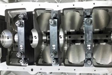 ROCKET RACING HAS FIXED ALL OF YOUR INHERENT PROBLEMS OF THE OEM OLDS BLOCK. WE HAVE INCORPORATED STRONGER MAIN WEBS, THICKER OIL PAN RAILS, ARP HARDWARE, TRUE PRIORITY MAIN OILING AND UNIVERSAL BELLHOUSING THAT ACCEPTS OLDS, BUICK, PONTIAC, CADILLAC, AND CHEVY. OILING MODIFICATIONS, GIRDLES ETC ARE NO LONGER NEEDED. THESE BLOCKS WERE DESIGNED BY OLDS SPECIALISTS, MACHINISTS, AND RACERS UTILIZING THE LATEST CAD SOFTWARE TECHNOLOGY. THEY ARE MACHINED ON STATE OF THE ART CNC MACHINES OPERATED BY THE MOST SKILLFUL AND TALENTED MACHINISTS IN THE COUNTRY. WE ALSO WANT TO SAY THANK YOU TO ALL OF OUR CUSTOMERS FOR THEIR CONTINUED LOYALTY TO US WHICH HAS KEPT OUR DRIVE GOING TO BRING TO THE MARKET THE LATEST AND GREATEST OLDSMOBILE PRODUCTS. WITHOUT YOUR SUPPORT NONE OF THIS WOULD BE POSSIBLE!!